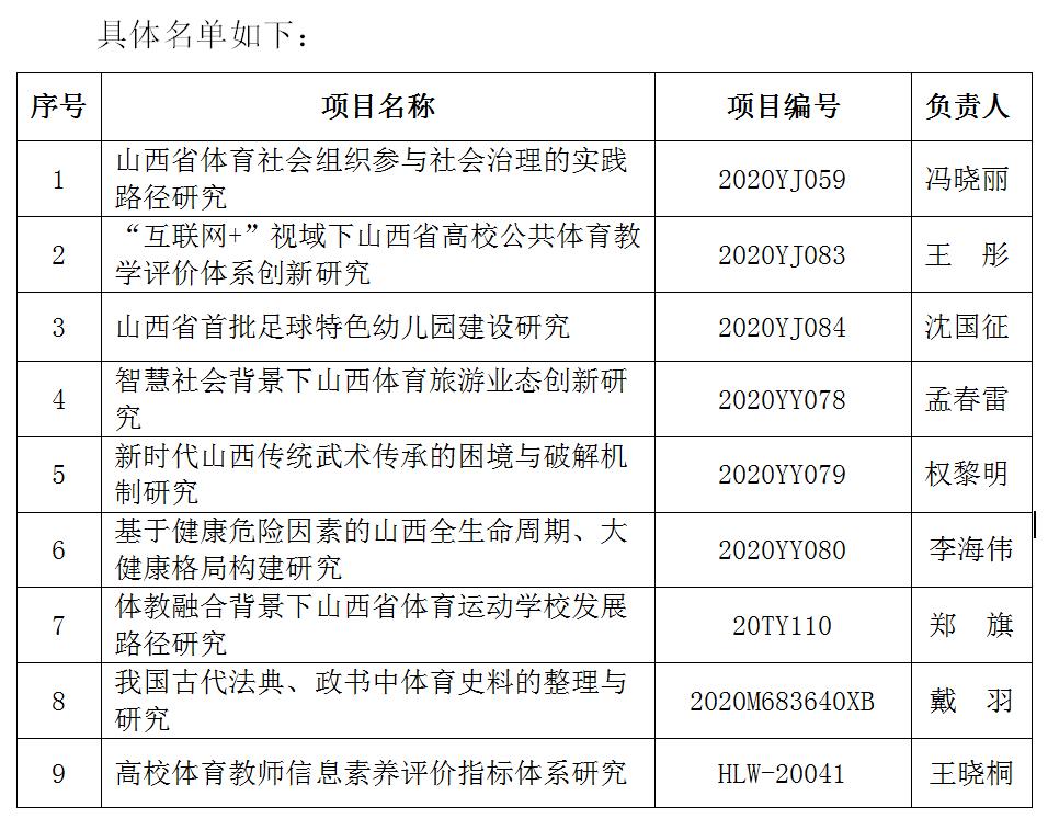 2.郑旗教授获2020年度山西省体育局体育科研课题立项