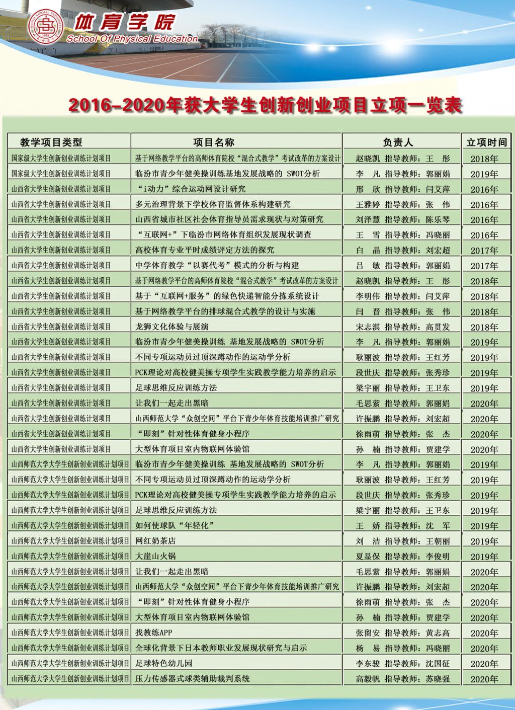 2016——2020年获老员工创新创业项目立项一览表
