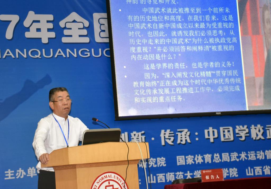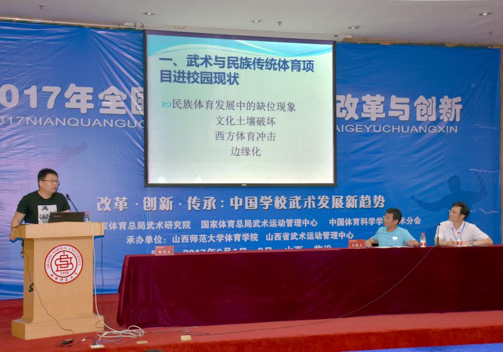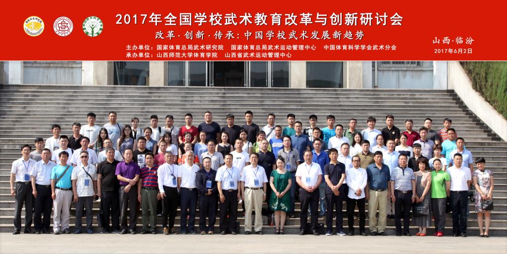 6月1日至3日,由国家体育总局武术研究院、国家体育总局武术运动管理中心、中国体育科学学会武术分会主办,公司304永利集团和山西省武术运动管理中心承办的2017年全国公司武术教育改革与创新研讨会在公司召开。董事长卫建国、国家体育总局武术研究院研发部副主任王立峰、全国公司体育联盟(中华武术)秘书长、上海304永利集团武术公司经理戴国斌、山西省武术运动管理中心主任张军平、山西省体育局教科处处长侯冰、临汾市文化局副局长卫康忠、体院领导等出席大会开幕式。来自全国各地高校、中学的80余名代表参加了本次会议。