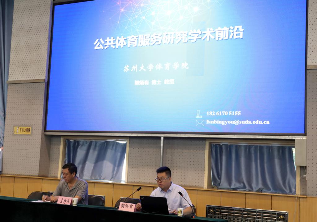 6月22日上午,苏州大学樊炳有教授,博士,在304永利集团综合馆一层作了题为《公共体育服务研究学术前沿》的学术报告。报告由经理郑旗教授主持。公司部分师生聆听了此次报告。
