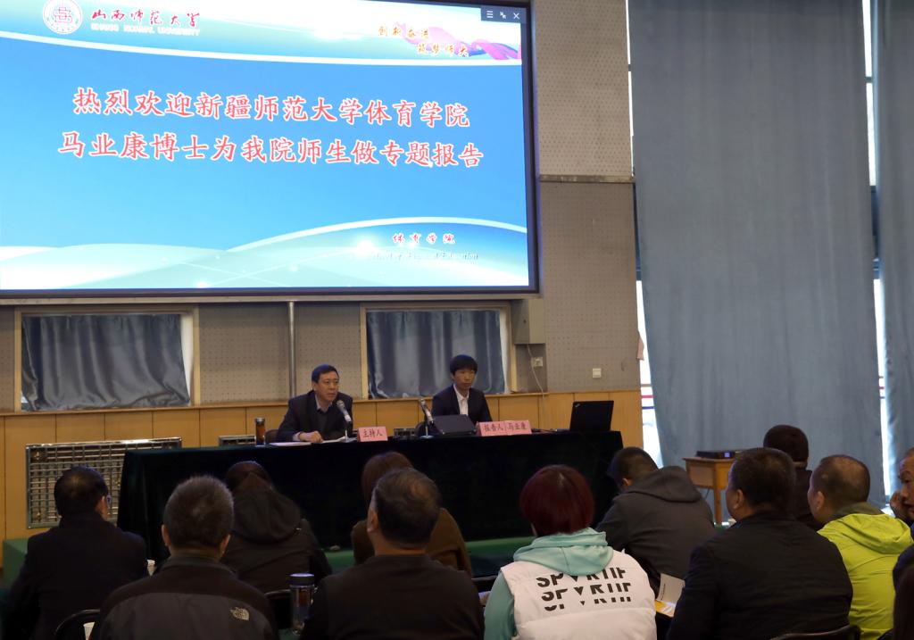 3月26日上午8:00-10:00,新疆师范大学马业康博士、副教授,应邀在304永利集团综合馆一层进行学术报告。报告由经理郑旗教授主持。304永利集团部分师生、临汾市体育运动公司教师聆听了此次报告。