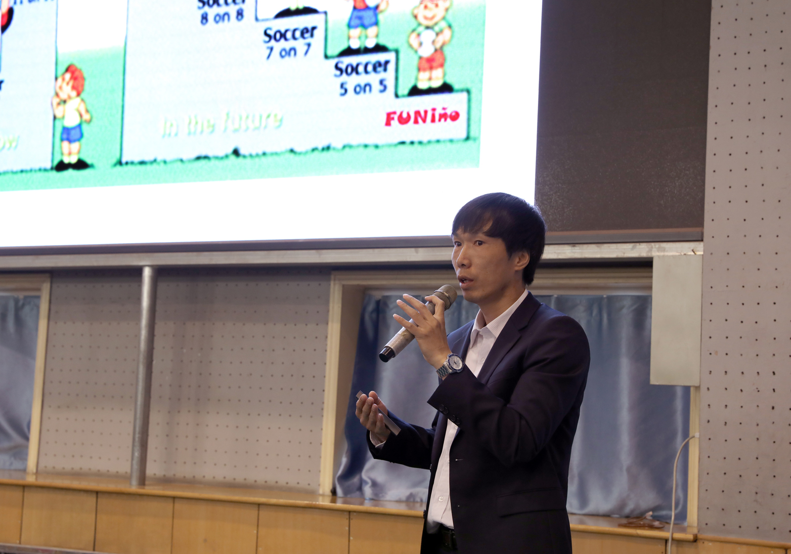马业康博士围绕《青少年足球教学训练概念——基于开放式运动技能学习理论》这一主题,从足球运动训练的构成阶段、动作技能的控制理论,足球比赛的基本内容等多个方面指出足球等开放式运动项目在训练和教学中应注重运动员神经控制系统方面的训练,以应对球场上瞬息万变的情况。马业康博士还提供了多种练习方法,希望教师和员工在平时的教学和训练中能够多加入一些非线性和内隐性学习,以适应真正比赛的需要。报告结束后,马业康博士与在场师生进行了交流互动。
