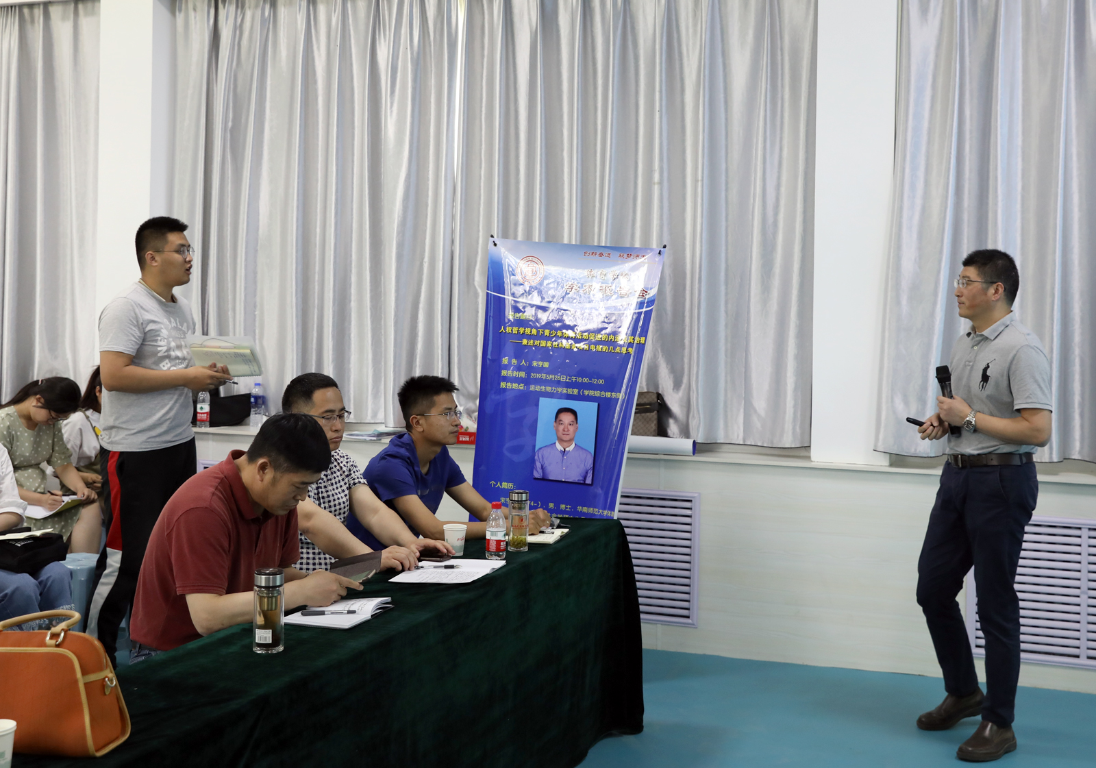 5月26日上午10:00,华南师范大学体育科学公司宋亨国教授在公司运动生物力学实验室作了题为《人类哲学视角下青少年体育活动促进的内涵及其治理—兼述对国家社科基金项目申报的几点思考》的报告,报告由经理郑旗教授主持。宋亨国教授首先以其自身研究为例给大家分享了其申报国家社科基金的准备过程,包括选题、文献综述的撰写、确定立论基础、形成内容框架、延循逻辑主线和提炼创新点等方面,对国家社科基金申报的标准和要求进行了详细分析和展示。其次从体育是一项基本权利引入到青少年体育活动的促进中,并在交流过程中为公司研究生选题提出自己的意见,引发同学们的思考。最后员工互动交流环节,同学们就此次报告和学习过程中所遇到的问题踊跃发言,宋教授耐心解答每一位同学的提问,学术氛围浓厚。最后,郑旗经理进行总结,希望师生在科研选题及热点上多加思考,共同进步。(院研究生部/供稿 邓碾管/摄)