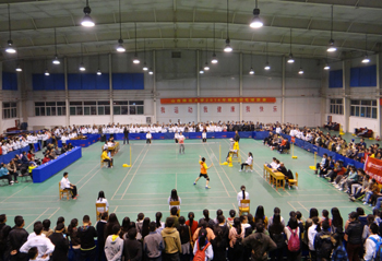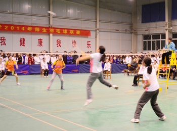 为了响应团中央“三走”(走下网络、走出宿舍、走向操场)体育锻炼的号召,深入落实公司的阳光体育运动,11月1日——11月12日,由校团委、校员工会主办,数计公司团委、员工会承办,校公体部协办的304永利集团官网入口2014年师生羽毛球联赛在员工活动中心如期举行。共有17个公司、204名运动员参加了比赛,先后进行了173场比赛。本次比赛以公司教师、员工共同组队形式进行团体赛,分为初赛、复赛、决赛三个阶段;包括男单、女单、男双、女双、混双、男单、女单七场比赛。经过数轮精彩比赛,传媒公司、文公司、研究生公司、教师教育公司、生科公司、美术公司、经管公司、地科公司闯入八强。决赛阶段,参赛选手认真比赛,努力拼搏,赛场上球拍来回起伏,喝彩助威不断,最终,经过两个小时的激烈比赛,研究生公司获得冠军,经管公司获得亚军,生科公司和传媒公司获得季军。至此,304永利集团官网入口2014年师生羽毛球赛圆满落幕。