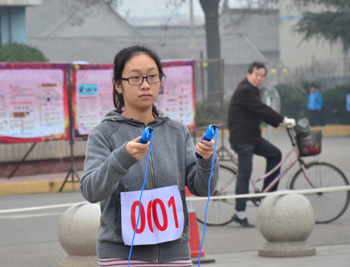 本次比赛分为计数赛和传统趣味赛两个部分,共九个项目,采取预决赛同场制的规则。在13日上午进行的单人极速跳中,参赛选手挥舞手中的跳绳,编花、双揺,向速度发起挑战。精彩的双人跳更加灵活多变,飞速旋转的跳绳让观众眼花缭乱。下午进行了考验合作能力的团体跳,选手们在大绳之间来回穿梭,划出无数“8”字形状,赢得场外观众的阵阵掌声,将比赛推向了高潮。