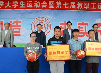 运动会总裁判长闫保红宣布比赛成绩:生命科学公司和历史与旅游文化公司获团体操表演最佳组织奖;员工组比赛前六名分别是生命科学公司、经济与管理公司、数计公司、物信公司、传媒公司和政法公司,最佳组织奖由化材公司、教师教育公司获得;教工组比赛前六名分别是生命科学公司、图书馆、化材公司、机关一工会、教师教育公司和数计公司,物信公司、机关二工会摘得最佳组织奖。