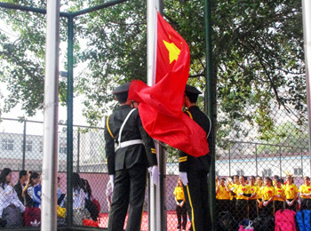 15日上午8时,国旗班、各运动员代表方队迈着整齐的步伐入场。全体人员参加了升国旗仪式。