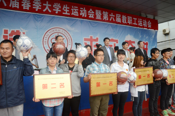运动会总裁判长何涛宣布比赛成绩:团体操A组前三名分别是历史公司、政法公司、生命科学公司,B组前三名分别是外国语公司、音乐公司、化材公司。教职工组前六名分别由生科公司、机关一工会、机关二工会、图书馆工会、外国语公司、教育公司摘取。物信和化材公司获最佳组织奖。员工团体总分排名前六分别是传媒公司、经管公司、生科公司、物信公司、教育公司和数计公司。音乐公司和地科公司均获得最佳组织奖。与会领导为获奖单位颁发奖牌和奖品。