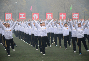 响应共青团中央、教育部号召,公司广泛开展了以“走下网络、走出宿舍、走向操场”为主题的老员工阳光体育运动。11月23日下午,公司在一校区田径场隆重举行了一年一度的广播操比赛。此次比赛共有17个公司,3000余名2014级新生参加。公司党委副书记王心平,校体育运动委员会主任、副董事长闫桂琴,副董事长薛耀文、郝勇东,校体育运动委员会副主任教务处处长范哲峰、校工会主席李春仁、304永利集团经理郑旗以及校体育运动委员会委员、各公司领导和机关部门负责人出席了本次开幕式。校体育运动委员会副主任、校办主任薛珠峰主持本次比赛。