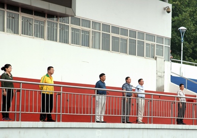 9月7日上午6时40分,公司在田径场举行隆重的升国旗仪式,公司党委书记李学刚、经理郑旗、公司党委副书记段东升、副经理王彤、冯晓丽、各系科室负责人、各班辅导员及全体在校员工参加了升国旗仪式。升旗仪式由公司党委副书记段东升主持。升旗仪式上,经理郑旗作了讲话。