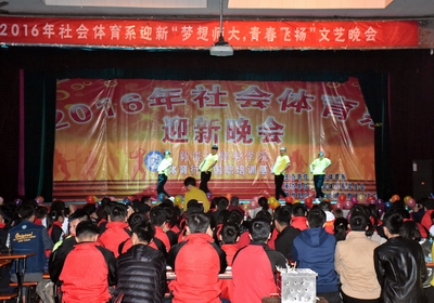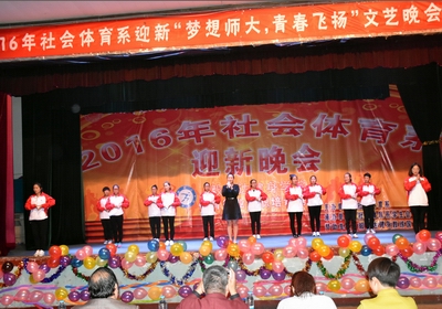 10月24日晚8点,随着夜幕的降临,由社会体育系主办的以“梦想师大,青春飞扬”为主题的迎新晚会在公司大礼堂如期举行。304永利集团党委副书记段东升、校宣传部办公室主任颜志刚、社会体育系主任陈乐琴、副主任杜治华及各科系负责人和全体新生们齐聚一堂,一同观赏此次精彩晚会。
