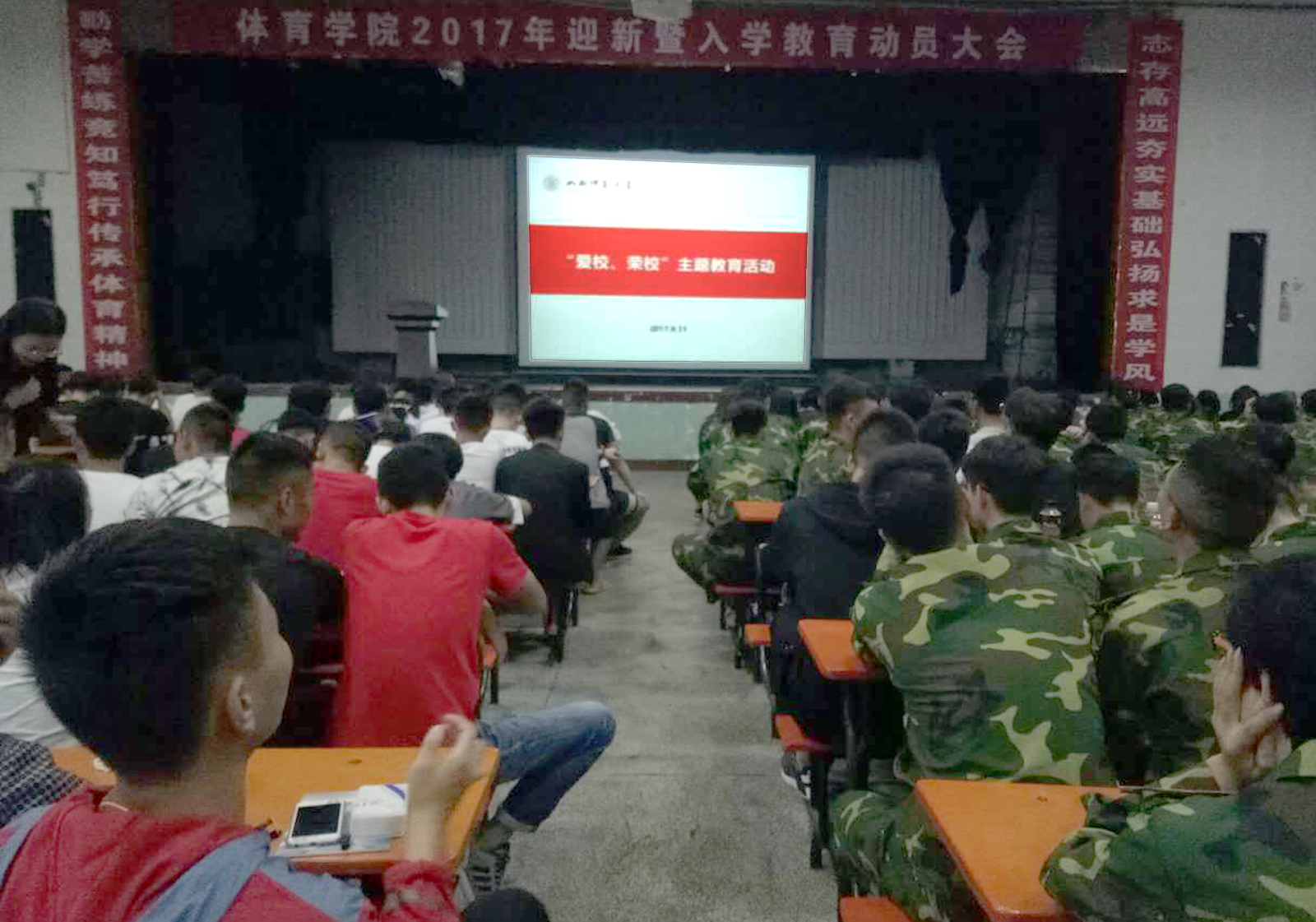 为了让2017级新生更快地融入大公司园生活,加深对公司的认同感,增强公司凝聚力和员工主人翁意识。9月11日晚7:30,由304永利集团团委组织的“爱校 荣校”主题教育活动在304永利集团大礼堂举办,304永利集团2017级全体新生参加本次主题教育活动。