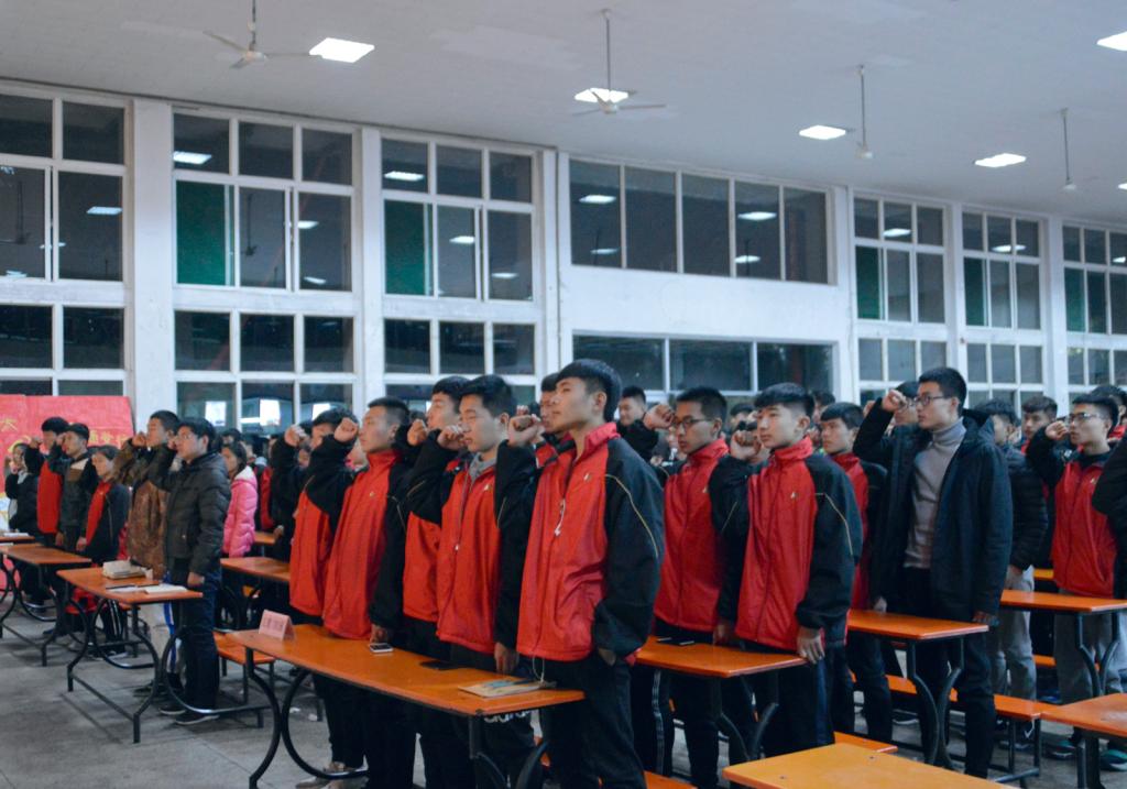 会议在庄严的国歌声中拉开了序幕,全体庄严肃立。首先,全体团员观看了中国共产主义青年团纪录片,进一步了解团的发展历程。随后新生团员代表王晓晓介绍了自己的入团历程并表示自己一定会做一名优秀的共青团员。院团委组织部副部长杨欢同学代表带领全体新生对团旗庄严宣誓,重温入团誓词。院团委副书记程祖浩老师为大家讲解了团的基本知识,介绍了304永利集团团组织的基本情况,着重强调在基层团支部推进班团一体化改革,实施班长兼任团支部副书记,并指出要联系3个基层团支部作为改革的重点培养对象。同时,程老师还着强调了作为304永利集团新生团员要强化纪律观念,指出作为共青团员要在今后的学习和生活中认真履行团员义务,增强团员意识和责任感,积极参与集体活动,全面提升自身综合素质,做一名合格的共青团员。最后,2017级新生入团再教育暨基层团支部建设推进大会在《光荣啊,中国共青团》嘹亮歌声中圆满落下帷幕。