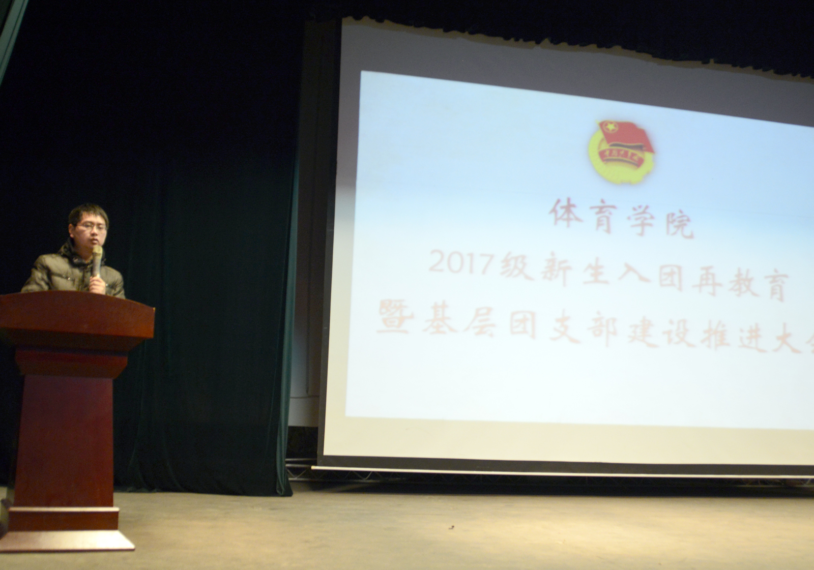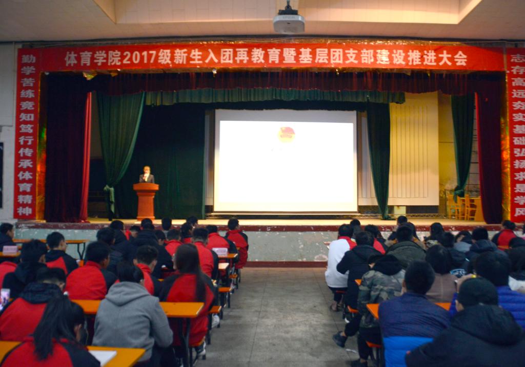为庆祝党的十九大胜利召开,学习宣传贯彻落实党的十九大精神,进一步增强2017级新生团员意识,坚定新生团员理想信念,加深对共青团的认识,同时培养新生团支部组织能力、创新能力,夯实团的基层工作,整体推进304永利集团团建工作。11月21日晚304永利集团在大礼堂举办2017级新生入团再教育暨基层团支部建设推进大会。304永利集团团委副书记程祖浩老师、院员工会主席贾雷、各系团总支书记及全体大一新生参加本次大会。院团委副书记成婉毓同学主持大会。