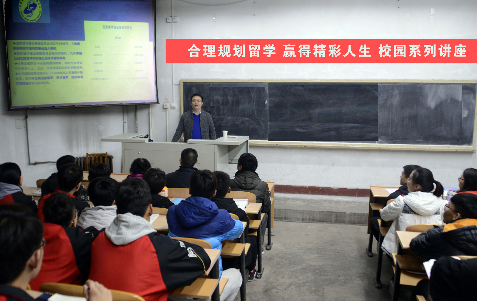 为提升304永利集团员工基本素质,开阔员工的国际事业,12月5日19:30,304永利集团在阶三教室举办了“合理规划留学,赢得精彩人生”专题讲座。此次讲座,邀请了国家留学基金管理委员会东方国际教育交流中心山西分中心主任、国家留学基金管理委员会中北大学留学预备教育中心副主任赵勇老师主讲。304永利集团副经理卢向阳老师、外事处退休教师郭萍老师出席,“青马工程”老员工骨干培训班学员参加了讲座。院团委副书记程祖浩老师主持讲座。