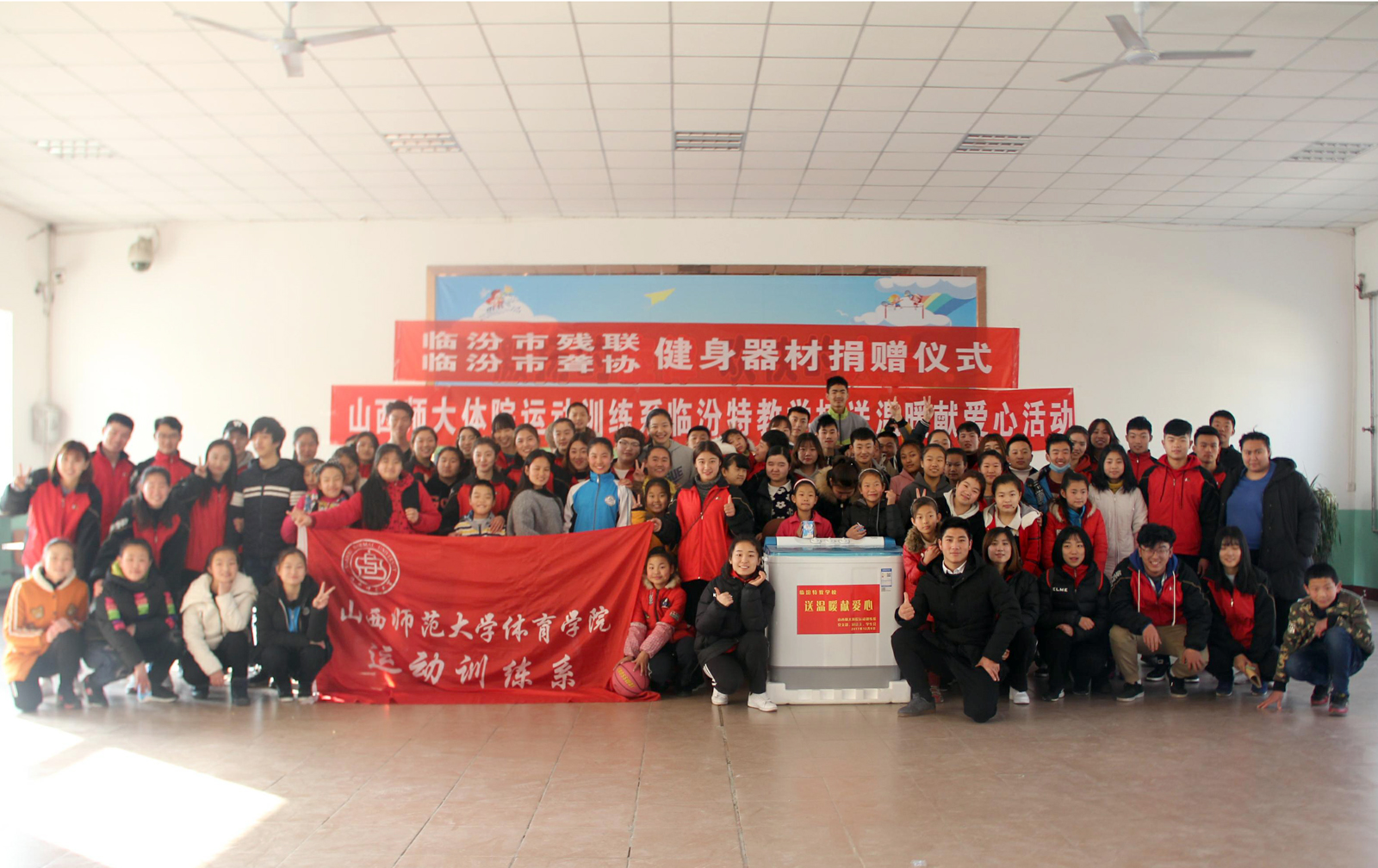 这一活动是我系品牌活动之一,特教公司“送温暖、献爱心”公益活动是继11级运训员工干部张沙沙同学组织“红丝带公司献爱心”项目后,由12级张嘉芮同学设计的,之后13级张秦皓、14级那英、15级师荣霞等员工干部传承了这一爱心传统。这一活动的实施使得越来越多的人加入到我们的献爱心队伍中来。在这里特别要强调是,此次送温暖活动得到了李吉慧、张杰、程祖浩等10多位老师的捐助和支持,另外已毕业运动训练系员工干部、公司研究生以及其他专业的同学都纷纷慷慨解囊,为临汾特教公司献上了自己的一份爱心。这一活动的长期坚持,已经得到了大家的充分认可,并且也具备了相当的影响力。