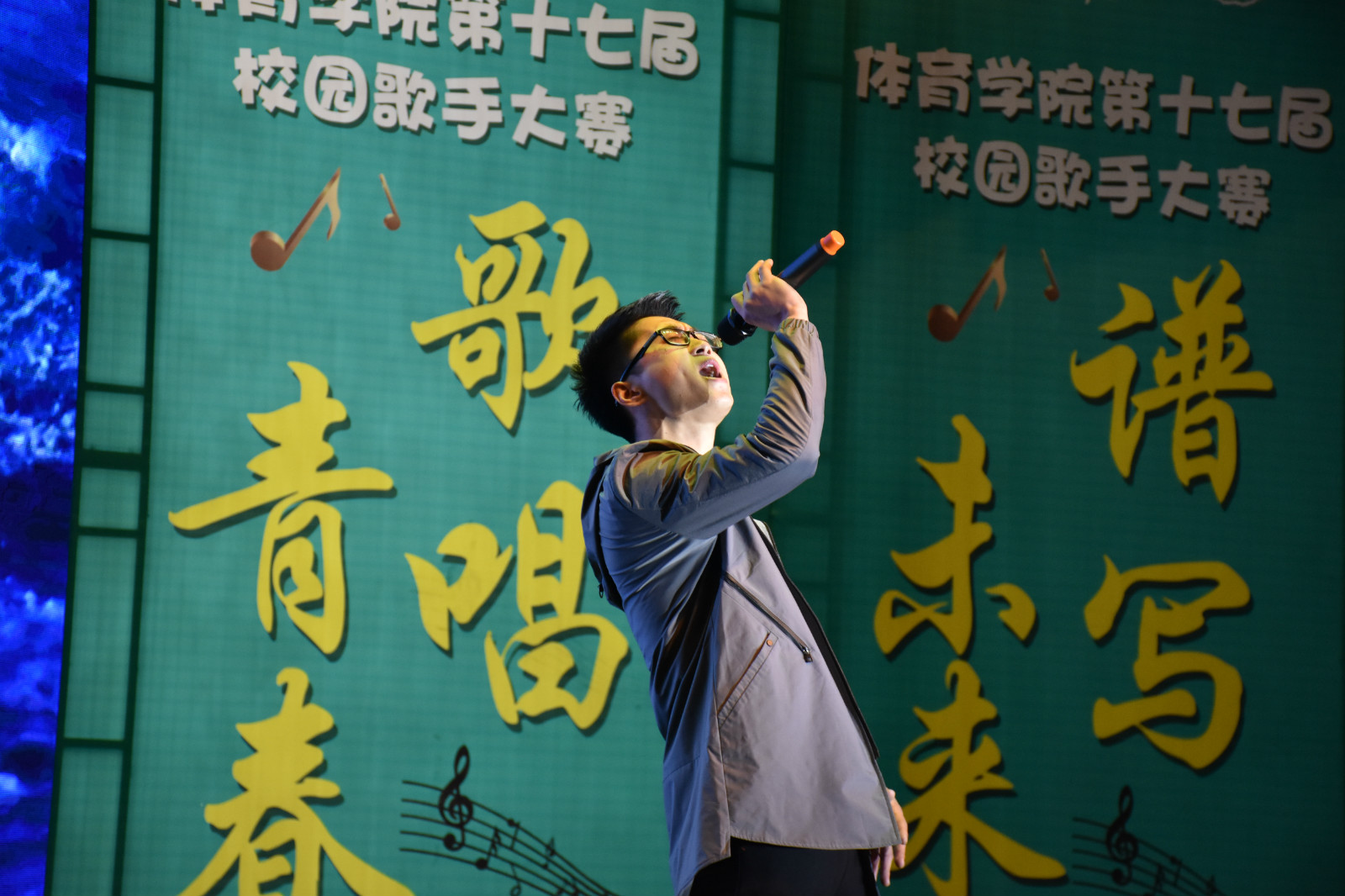 一曲《老男孩》大合唱正式拉开了本次大赛的帷幕,激起了现场每位观众的热情。选手自选歌曲虽然有不同的风格,但都展示出了他们强大的实力,也正是这种演唱实力和舞台表现力,将大赛一次次推向高潮。比赛期间,为加强兄弟院校的交流学习,特别邀请了山西体育职业公司与公司跳绳队带来了花样跳绳表演,文理公司舞蹈协会带来了舞蹈表演。经过激烈角逐,民族传统体育系1502班王军港获得大赛第一名,体育教育系1601班杨晶获得大赛第二名,体育教育系1502班张怡婷获得大赛第三名,运动训练系1703班李俊博获得最佳人气奖。最后,出席的领导老师为获奖选手颁奖并合影留念。