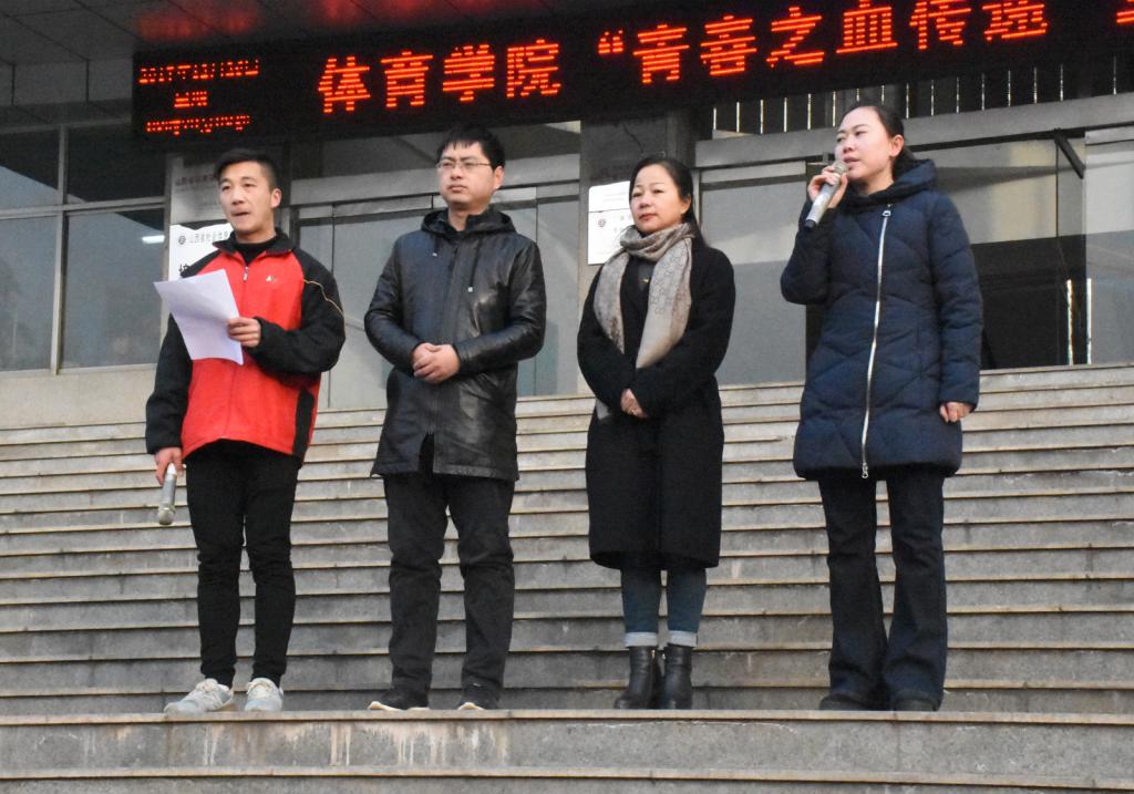 在开幕仪式上,团委副书记程祖浩老师鼓励同学们积极的参加到无偿献血事业中来。同时,临汾市中心血站副站长孙亚琴及临汾市中心血站献血服务科主任杨瑞共同授予公司标有“支持无偿献血,热心公益事业”的锦旗。以此感谢公司青年员工多年来对临汾市无偿献血事业的支持。献血日虽然天气寒冷,但是仍然挡不住同学们参与到无偿献血活动中的热情,更有体育二系主任吴峰山老师参加到献血活动中来,献出了自己的一份爱心。充分展现了304永利集团师生共同献爱心的目标。