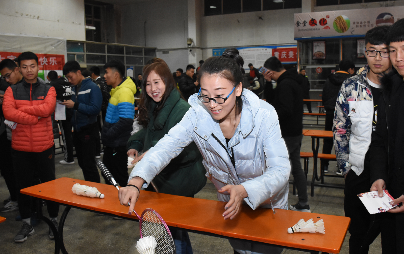 游园晚会以节目表演为开场,各个协会积极上台展现自己的风采,为晚会增添了许多色彩,有劲爆的舞蹈串烧、悠扬动听的歌声、多才多艺的吉他弹唱、幽默风趣的传统相声表演、中华传统武术表演和现代火热的蹦床表演,同时还有振奋人心的军体拳。晚会现场热闹非凡,同学们雷鸣般的掌声更加衬托节目的精彩,充分展现同学们的青春活力与激情,现场气氛十分热烈。随后,公司各员工社团精心准备的游艺活动在大礼堂处处开花,保健协会的水上行进、乒乓球协会的筷子夹乒乓球、羽毛球社的击球入桶、足球协会的盲人指路、武术协会的看谁扎的准、书法协会的毛笔字比赛、舞蹈协会的套花灯等游戏吸引了大量同学参与其中。活动中,各社团还设立了丰富的活动奖品和精美的纪念品,为同学们送上了新年的祝福和深切的问候。