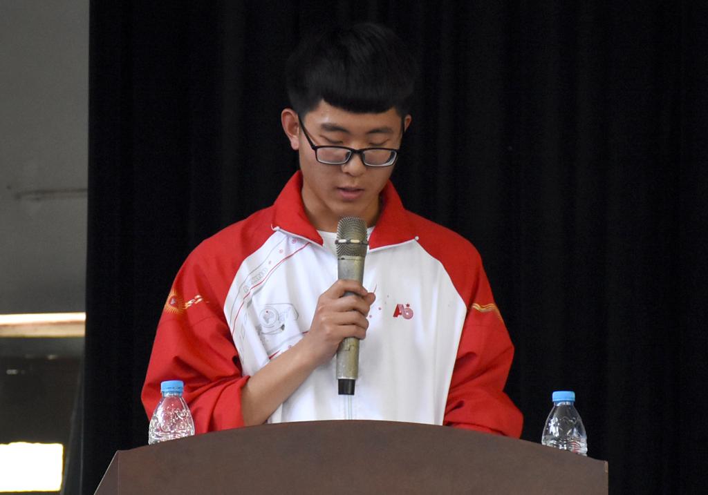 体教1602班的段世庆代表校级优秀团员发言