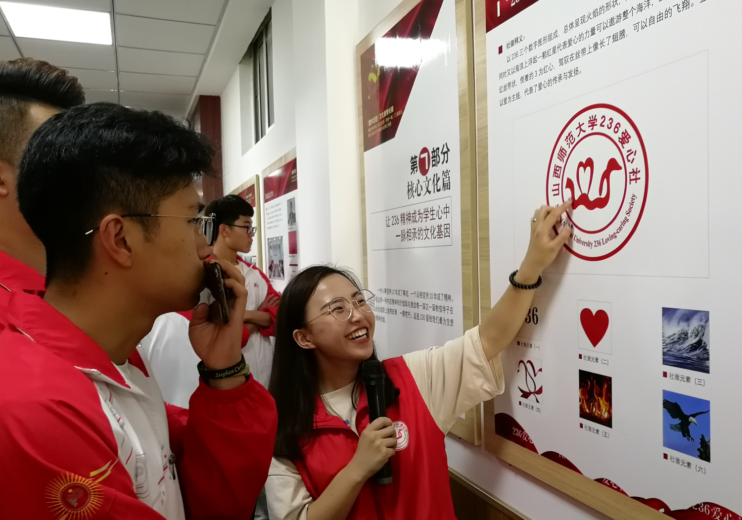 首先,青马学员和员工干部来到236“爱的足迹”文化教育长廊236爱心长廊,由物信公司236爱心社志愿代表张瑜从12个方面介绍了236党支部“两学一做”和“三基建设”暨236爱心社十年成长成果,从历史回眸篇、理论武装篇、志愿服务篇、党建品牌篇、调查研究篇、矢志成才篇、核心文化篇、社会影响篇、荣誉称号篇、桃李芬芳篇、关怀鼓励篇和走向未来篇进行了全面细致的讲解。随后,由戏剧公司孙雨同学带领青马学员参观并讲解了戏剧博物馆内的建筑与展览,大家仔细观看、认真聆听,学员们的疑惑都得到了耐心回答。