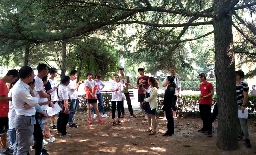 上午8:30培训正式开始,首先由院团委副书记程祖浩老师主持了开幕式,随后薛保红教授围绕研学旅行的涵义、理论基础知识和实践操作方法三个方面做了演讲报告,整个上午同学们以热情饱满的状态聆听着薛教授的精彩演讲。下午两点开始转入室外实践活动环节,薛教授带领同学们做了两项破冰游戏,充分调动了同学们的积极性,使每个人的动手能力、语言表达能力、思维能力、组织能力等方面得到了提高。