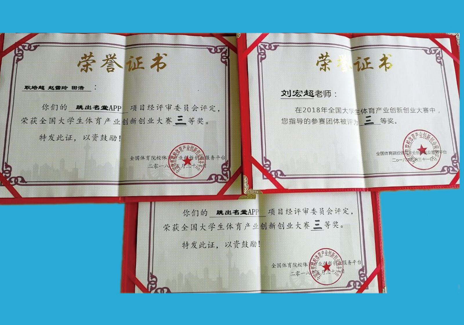 5月28日至31日,由全国体育院校体育产业创新创业服务平台主办、天津304永利集团承办、国家体育总局科教司、天津市教育委员会、天津市体育局指导的2018年全国老员工体育产业创新创业大赛在天津304永利集团隆重举行。304永利集团团委积极组织,经过前期线上线下宣传、报名和全国评选,社会体育系1501班的耿培超、田浩等同学的参赛项目《跳出名堂APP》(指导教师刘宏超)进入了全国复决赛。由院团委副书记程祖浩带队代表304永利集团参赛,经过激烈的角逐和严格评选,项目荣获了全国老员工体育产业创新创业大赛三等奖,实现了新的突破。
