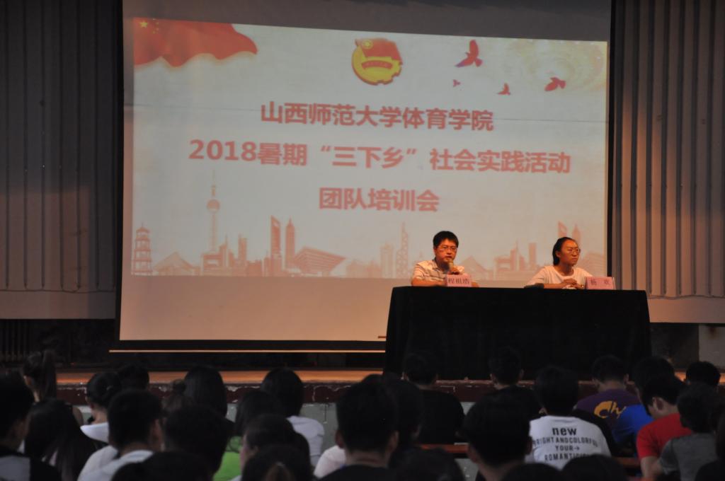 为扎实有效的开展暑期“三下乡”社会实践活动,7月2日中午13点,304永利集团于大礼堂举办2018年暑期“三下乡”社会实践活动培训会。院团委副书记程祖浩老师、团委副书记杨欢、以及44支校院两级实践团队共计350余名同学参加了本次培训会。