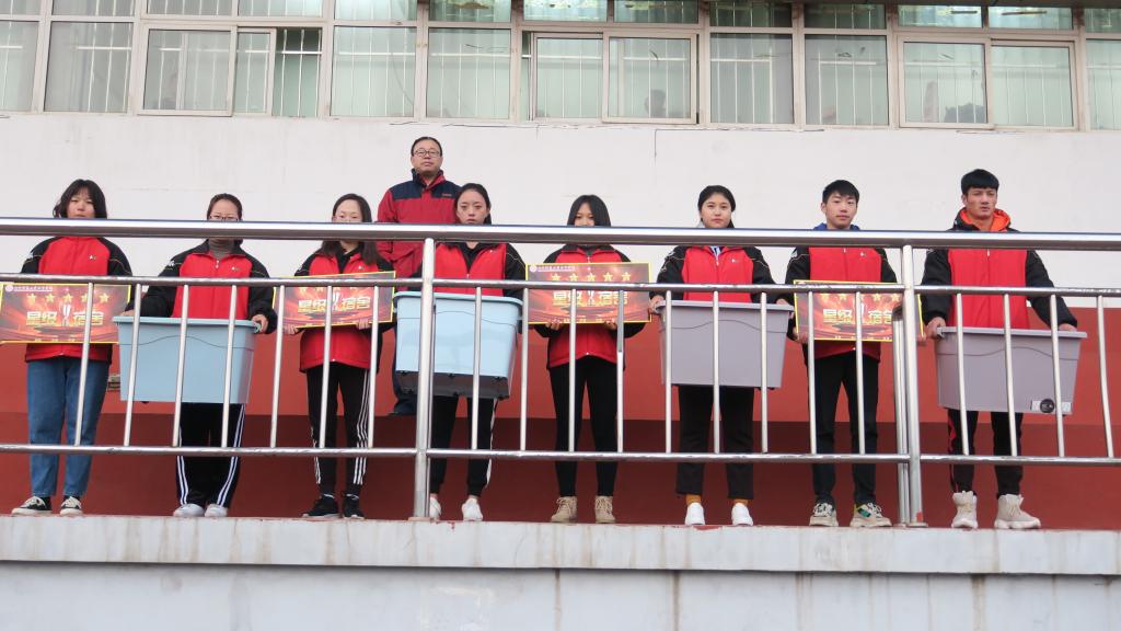 在此次评选中,22个宿舍各有特色。由院员工会纪检部及各系纪检部负责人组成的评委,走进宿舍评比并对22个宿舍进行逐个现场评分,对各宿舍出现的不足提出了改进意见。随后,22个宿舍进行了微信投票评选,各寝室同学积极参与到投票过程中来,为自己心仪的宿舍投上宝贵的一票。最终,评选出十个优秀宿舍,四个三星级宿舍,四个四星级宿舍,四个五星级宿舍。11月12日在田径场,早操升旗结束后,公司党委副书记孙学虎和各系部科室主要负责人为获得荣誉的宿舍进行了颁奖。