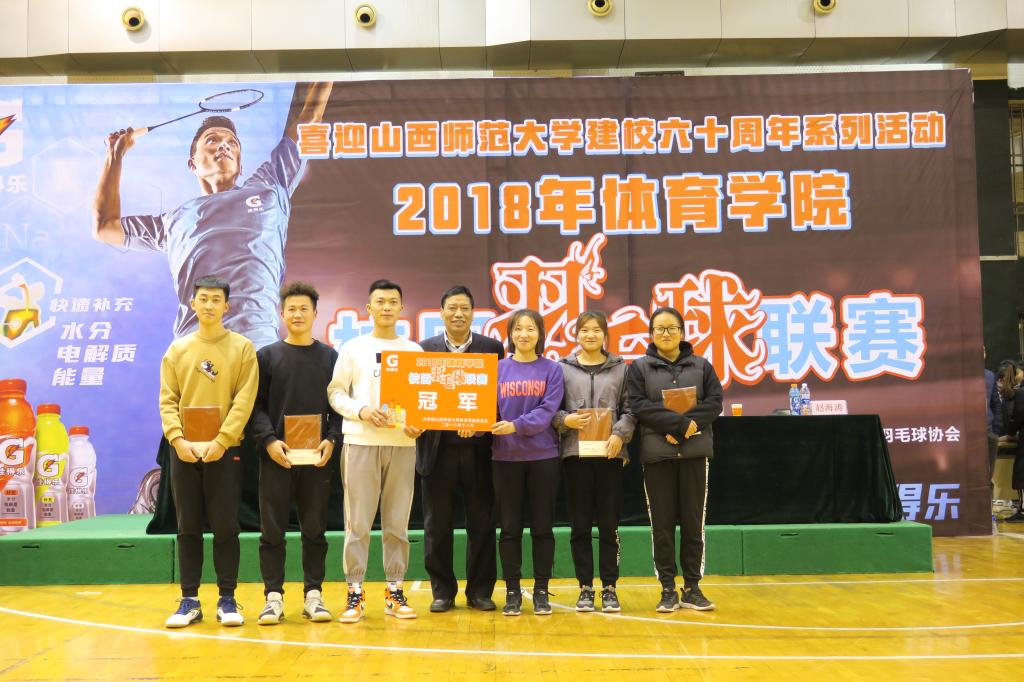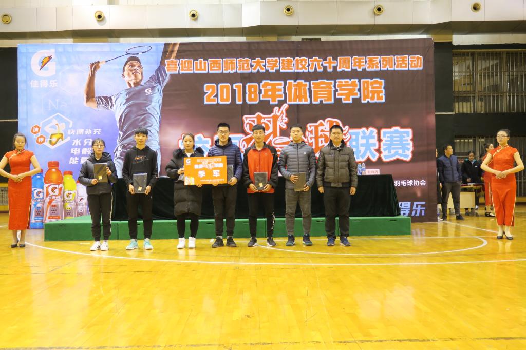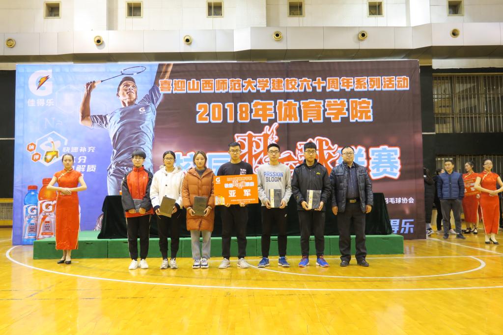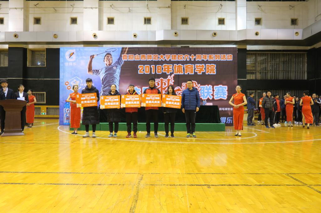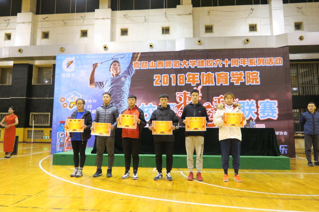 为了贯彻落实党的十九大精神,致敬改革开放四十周年,12月6日晚19:00,由院团委员工会主办,社团联合会,体育教育二系员工会承办,羽毛球协会协办的304永利集团2018年校园羽毛球联赛在综合馆举行闭幕式。公司党委书记李学刚、公司党委副书记孙学虎、院团委副书记程祖浩、体教二系副主任李向前、羽毛球联赛总裁判长马文政、辅导员赵海涛出席并为获奖班级和个人颁奖,各班代表队运动员和同学200余人观看了闭幕式。