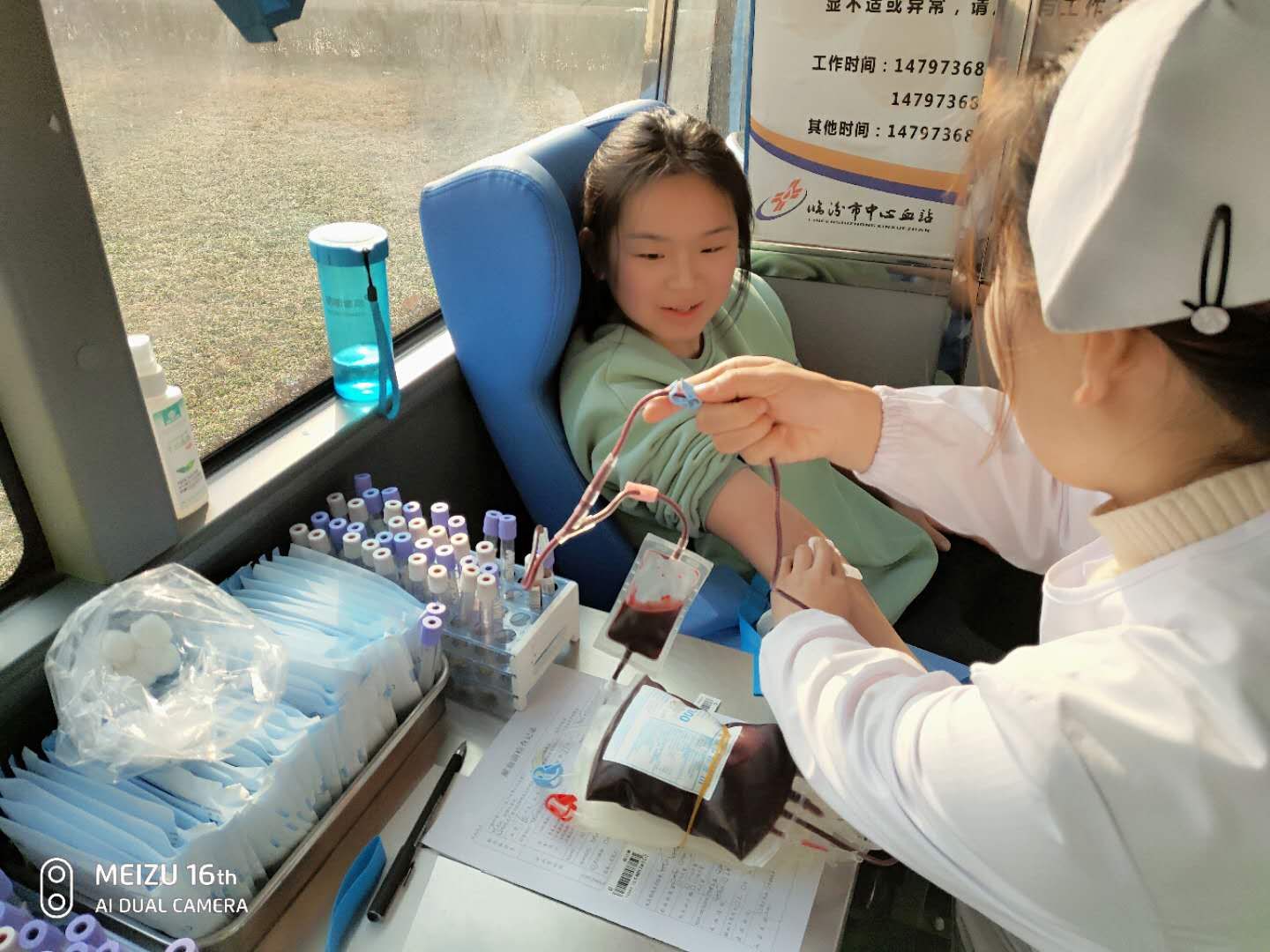 在教学楼前,“蒲公英”青年志愿者服务队的同学在献血车前热情洋溢的做好宣传,过往的同学都纷纷驻足咨询,有的同学则主动的拿上登记表准备献血。在采血车上,医护人员紧张的忙碌着做着准备工作。在献血过程中,同学们充分表现出了无私奉献的精神,充分体现出体院人爱国主义热情和责任与担当的使命感。(院团委供稿)