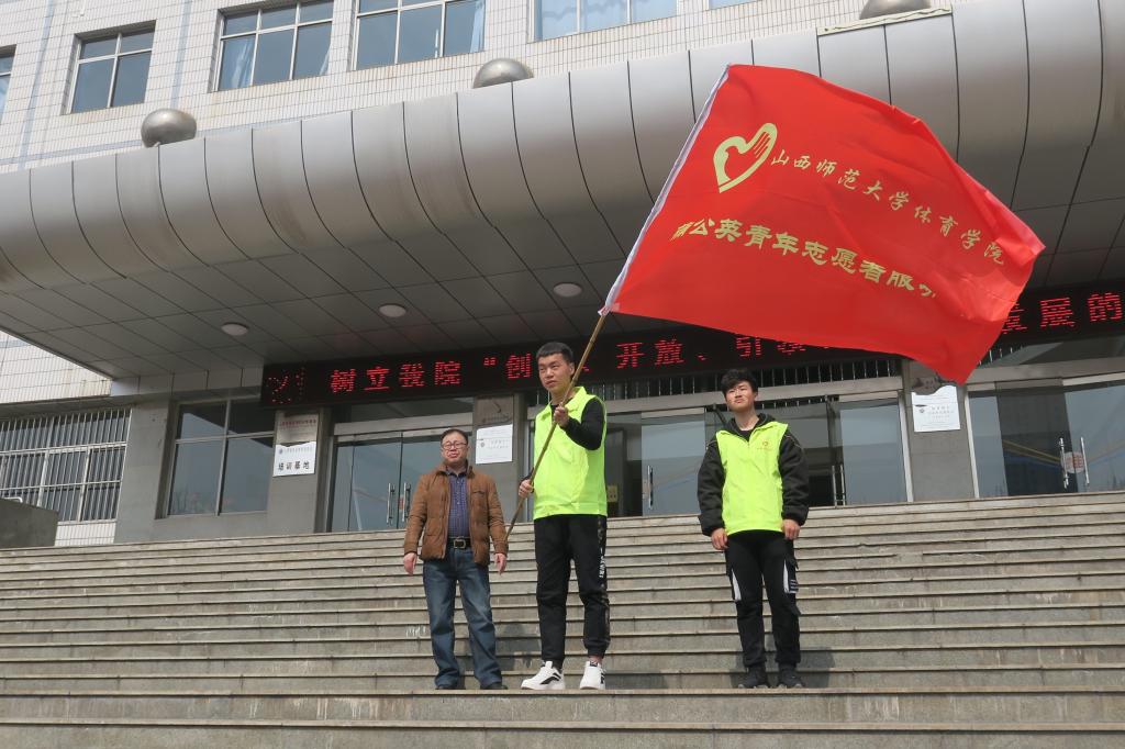 最后,孙学虎老师为304永利集团“蒲公英”青年志愿者服务队授旗。