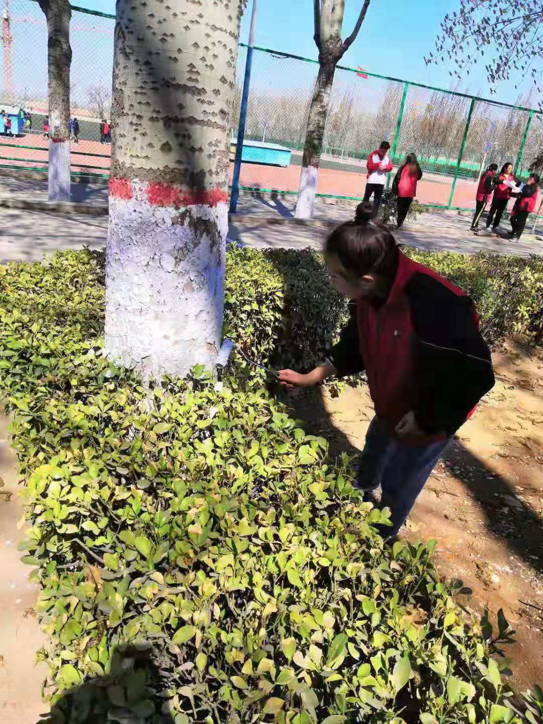 春回大地万物复苏,植树添绿正当时。为了保护公司树木,树立“爱绿、护绿”的生态文明新风尚,我系员工在全院开展了义务刷树活动,在树干上刷上白漆不仅能防虫,而且美观整齐。中午十二点半,大家拿着自己准备的工具在教学楼前集合,运动训练系团总支书记李鹏组织分工并宣布活动开始。本次活动组织有序、分工明确,同学们各司其职、干劲十足,一个小时后使得校园里的树木焕然一新,都穿上了洁白的“春装”,召示着春天已悄然而至,使整个校园充满了生机与活力。