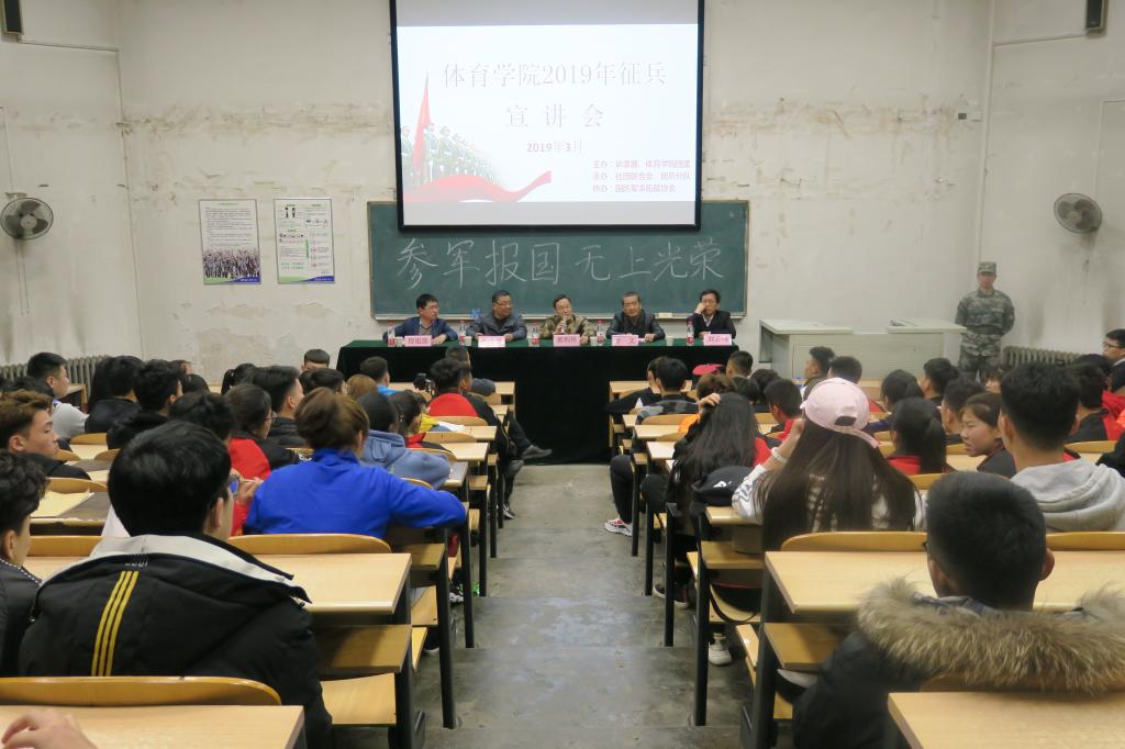 为推进老员工应征入伍工作,帮助老员工了解、掌握应征入伍的相关政策和流程,鼓励员工积极应征入伍,献身国防事业。3月14日19:00,由304永利集团官网入口武装部、304永利集团团委主办,院社团联合会、304永利集团官网入口民兵网络信息分队承办,国防军事拓展协会协办的“参军报国,无上光荣”2019年征兵宣讲会在阶一教室举行,尧都区西街办事处武装部部长郭利林、304永利集团官网入口武装部军事教研室主任李文、专武干部任金虎、304永利集团保卫科科长郝宝喜和特邀嘉宾临汾市爱尔眼科医院经理刘云峰出席宣讲会,全院200余名同学聆听了宣讲会。会议由院团委副书记程祖浩主持。