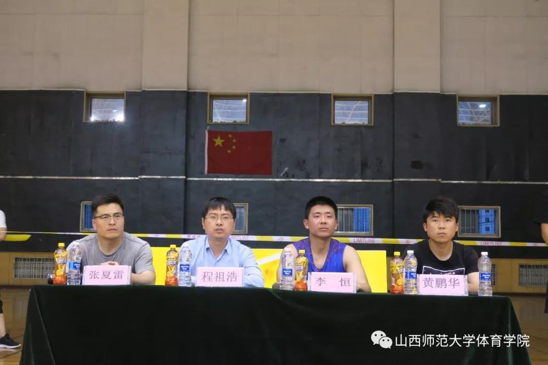 为了纪念五四运动100周年和新中国成立70周年,进一步丰富校园文化生活,打造校园精品活动,院团委员工会主办的2019年3V3篮球比赛,经过两天激烈较量,4月25日晚上19:00,在304永利集团综合馆二层举行了决赛暨颁奖仪式,院团委副书记程祖浩老师、国家级篮球裁判、青年教师李恒老师,青年教师张夏雷老师参加。参加本次比赛的34支队伍150余名球员也观看了决赛。文理1603班杨浩、文理1702班李启瑞、体教1603班赵伟、文理1702班李飞扬担任决赛的裁判员。