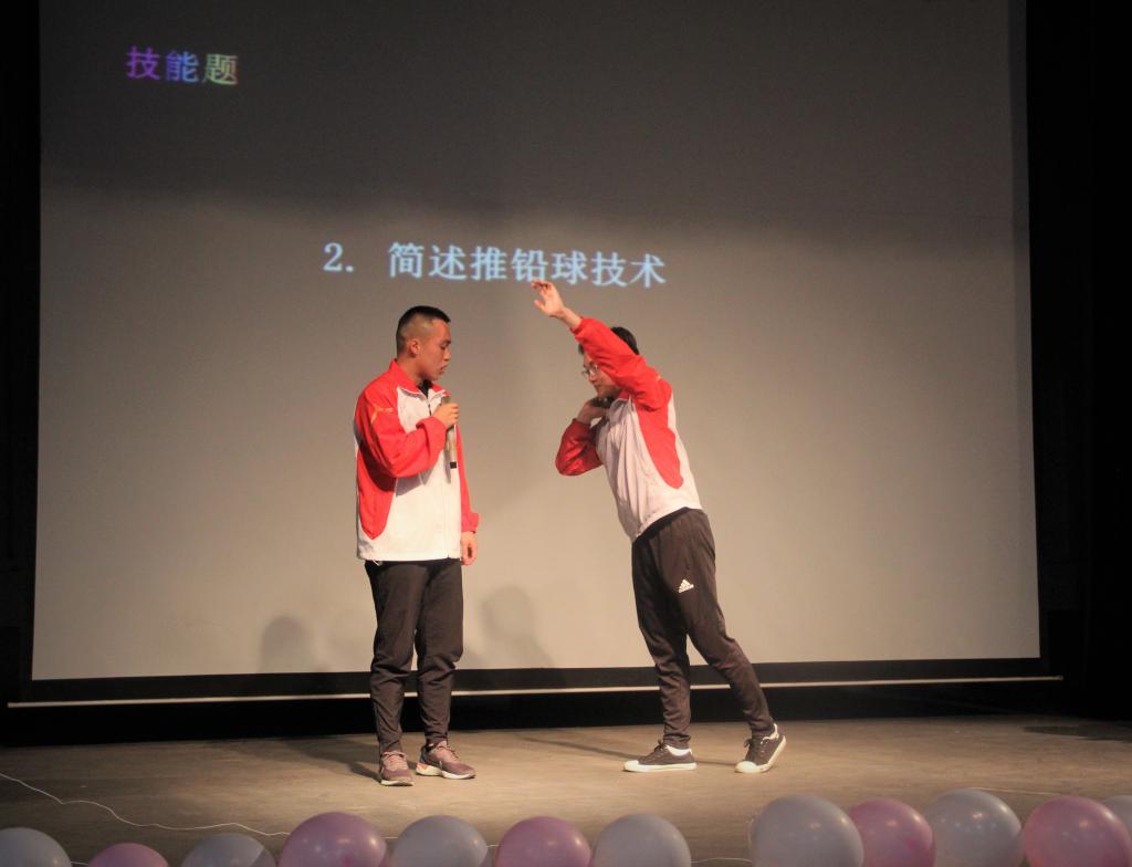 比赛结束后举行了颁奖仪式。最后李书记对本次知识竞赛做出点评:本次知识竞赛,知识面广、内容丰富,贴近体育专业实际,实践运用性强,同学们愿意学,乐意记,形式新颖。尤其是现场示范动作,现场解说,现场评委评价打分,效果甚好!希望运训系不断打造品牌活动,造福员工,造福体院!