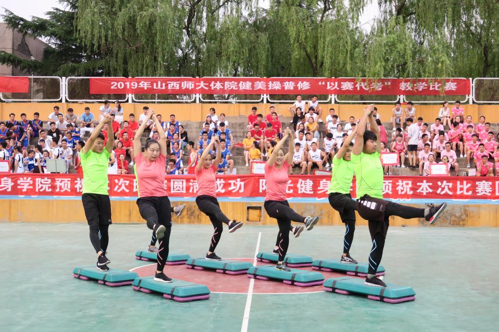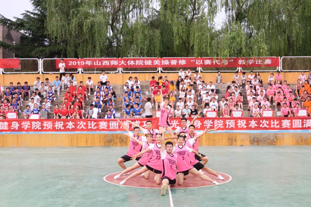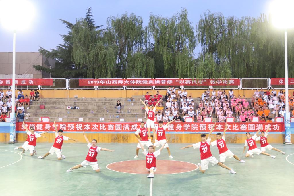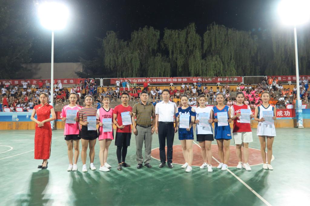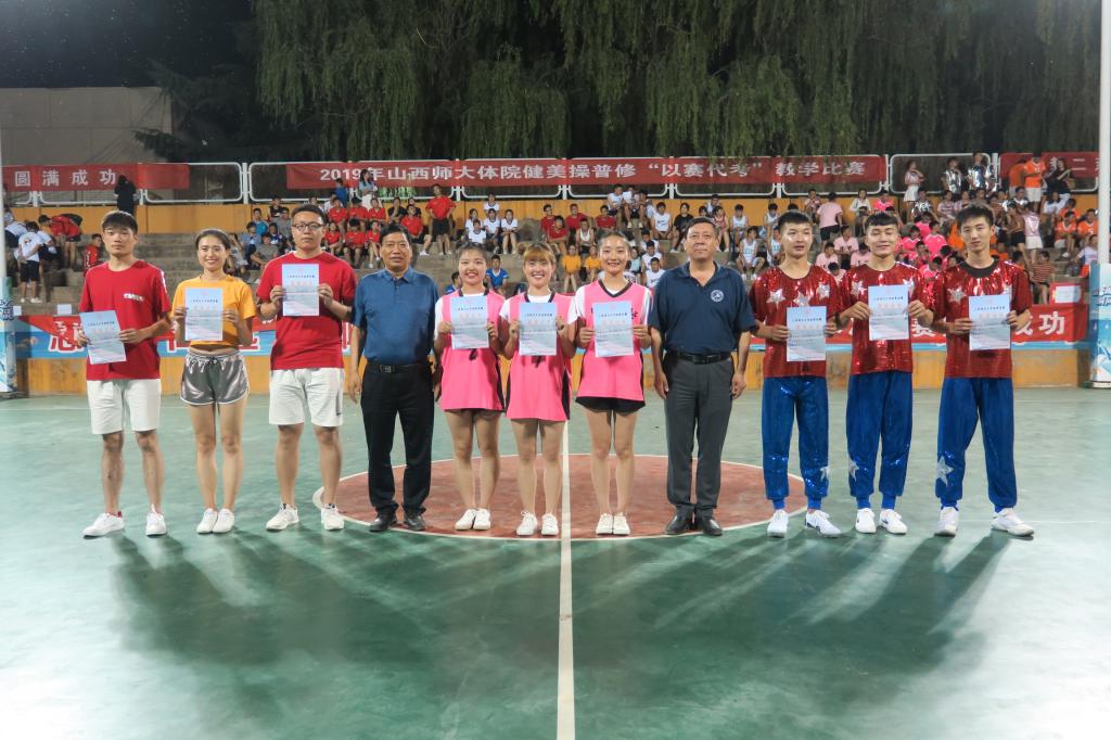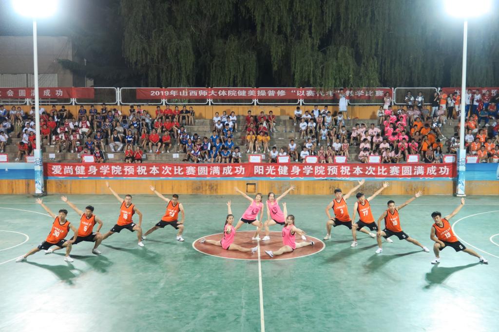 为了纪念五四运动100周年和新中国成立70周年,进一步促进课堂教学改革,提高公司员工健美操专业水平,活跃了校园文化氛围,6月14日19:00,由304永利集团教务科、健美操课程组主办、院团委承办、阳光健身公司、爱尚健身公司、福斯健身公司协办的2019年健美操普修“以赛代考”教学比赛在灯光篮球场举行。公司党委书记李学刚、公司党委委员、经理郑旗、体育教育系主任张杰、社会体育系主任孟春雷、院团委副书记程祖浩、社会体育系副主任李俊明、体育教育二系副主任张学龙老师出席了比赛。