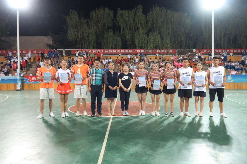 经过激烈的角逐,最终由社体1701班大波浪队,体教1602班爱的魔力转圈圈队,文理1601班特别范儿队获得最佳编排奖,由体教1603班创造奇迹队,最好的我们队,happy队获得最佳表演奖。最后,出席比赛的领导老师为获奖团队颁奖并集体合影留念。