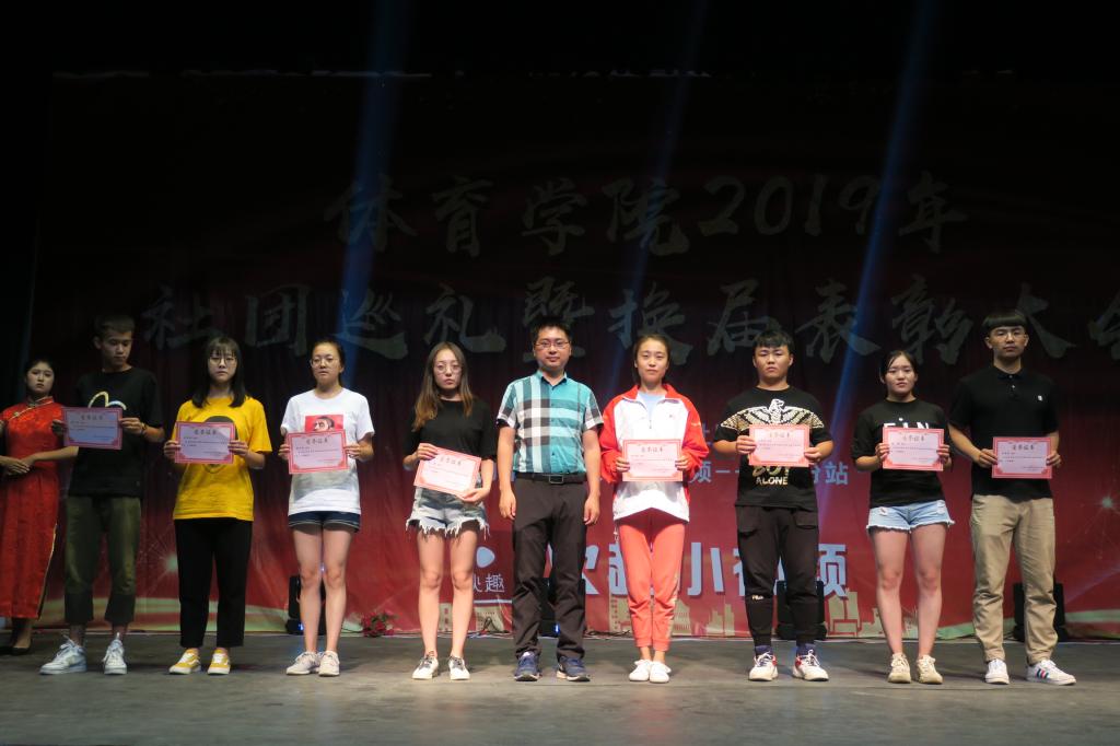 随后,由院团委副书记程祖浩老师为获得2018—2019学年优秀社团干部的同学颁发证书。田径协会带来的相声《笑谈大学》,使同学们得到了放松;羽毛球协会的《度我不度他》的“七年了却不见这一语道别”优美动听,感受到了一切放不下的牵挂;保健协会带来的《修理工》,让同学们明白了互相尊重的重要性。
