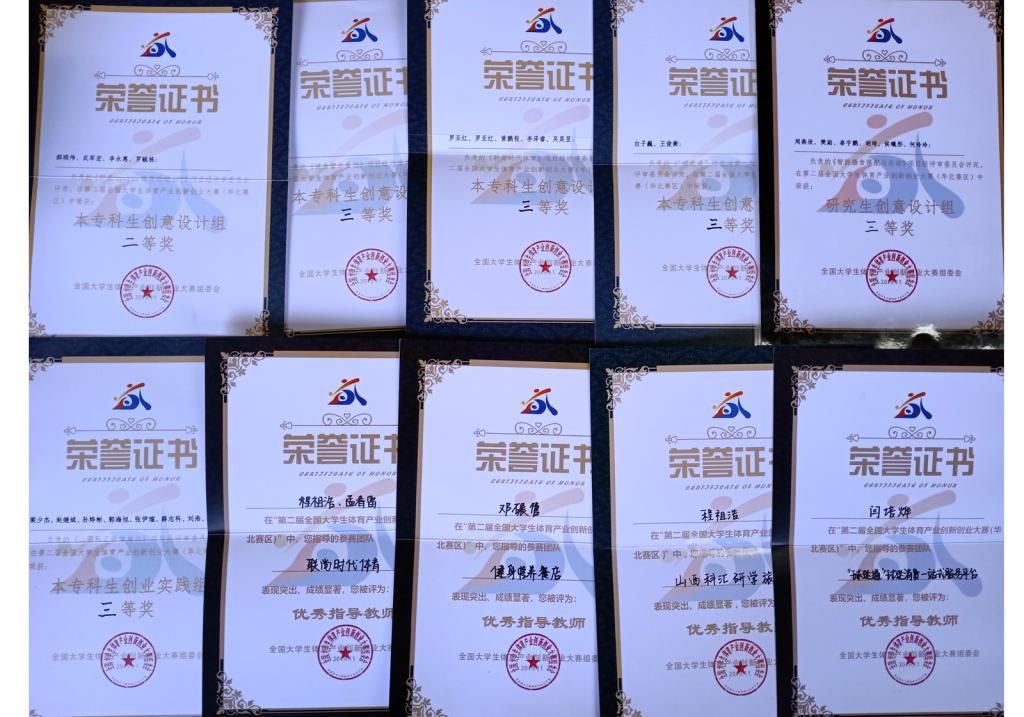 公司高度重视创新创业大赛,经前期宣传动员、网上报名和培训指导,9支队伍脱颖而出。本次体育产业创新创业大赛通过激烈的PPT项目汇报和现场答辩,最终,《群英SPORTS APP》项目荣获二等奖,《智能膳食搭配与运动》等6个项目获得三等奖,程祖浩、孟春雷老师等8位教师荣获“优秀指导教师奖”,公司荣获“优秀组织奖”。