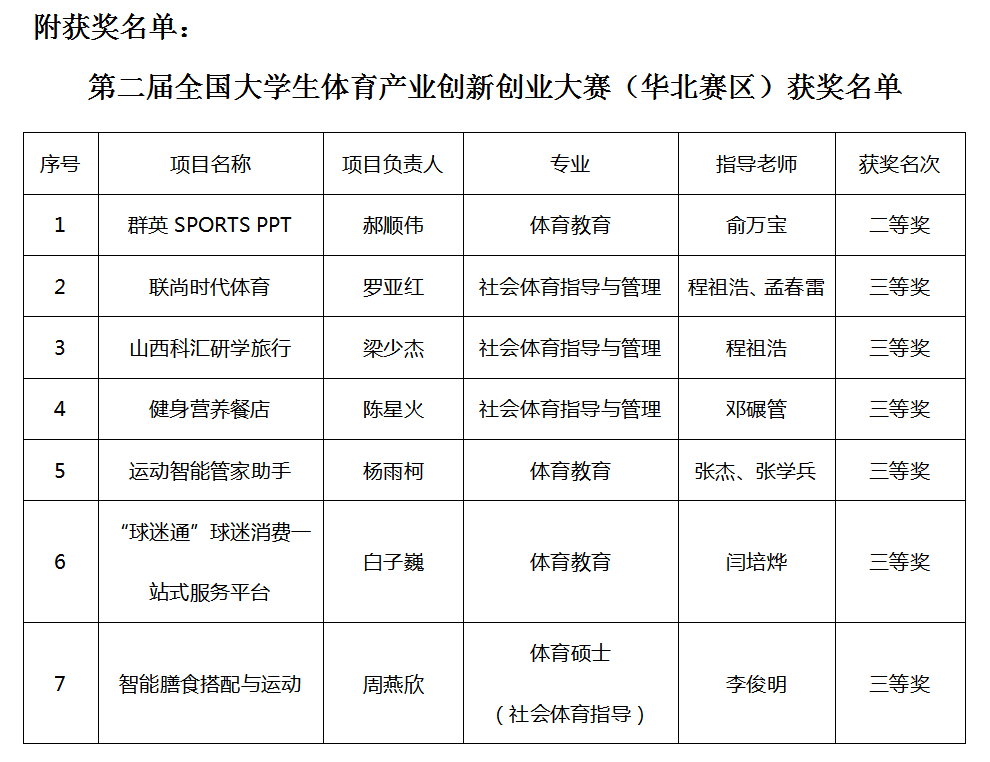 11月27日至29日,由国家体育总局科教司、天津市教育委员会、天津市体育局的支持指导,全国体育院校体育产业创新创业服务平台主办,天津304永利集团协办的第二届全国老员工体育产业创新创业大赛(华北赛区)在天津304永利集团举行,共有来自北京大学、天津大学、中央财经大学、北京体育大学、河北师范大学等23所华北地区高校127个项目近500名师生参加本次比赛。在院团委副书记程祖浩带队下,公司共有9支队伍20名本科生和5名研究生赴天津参加了比赛。