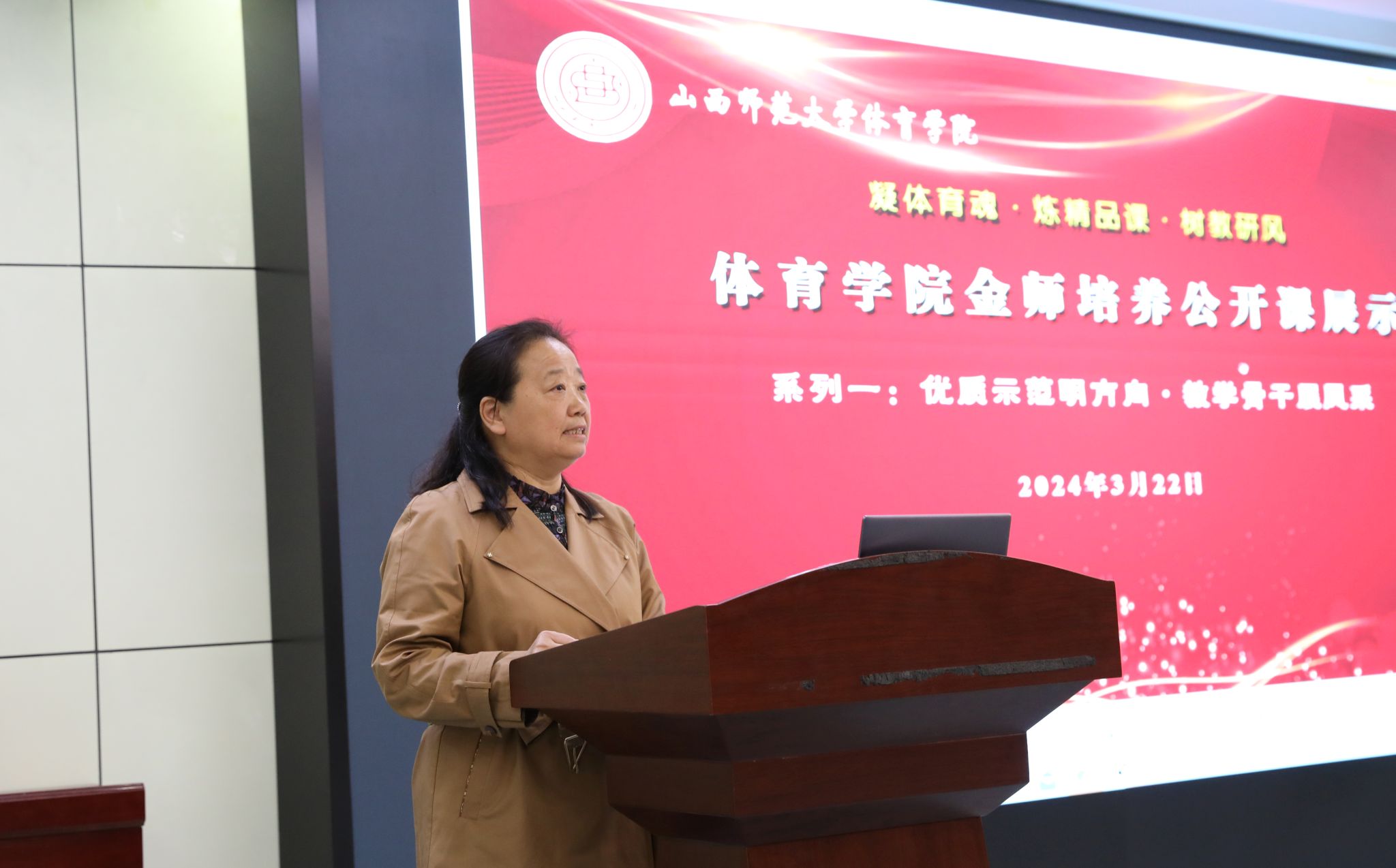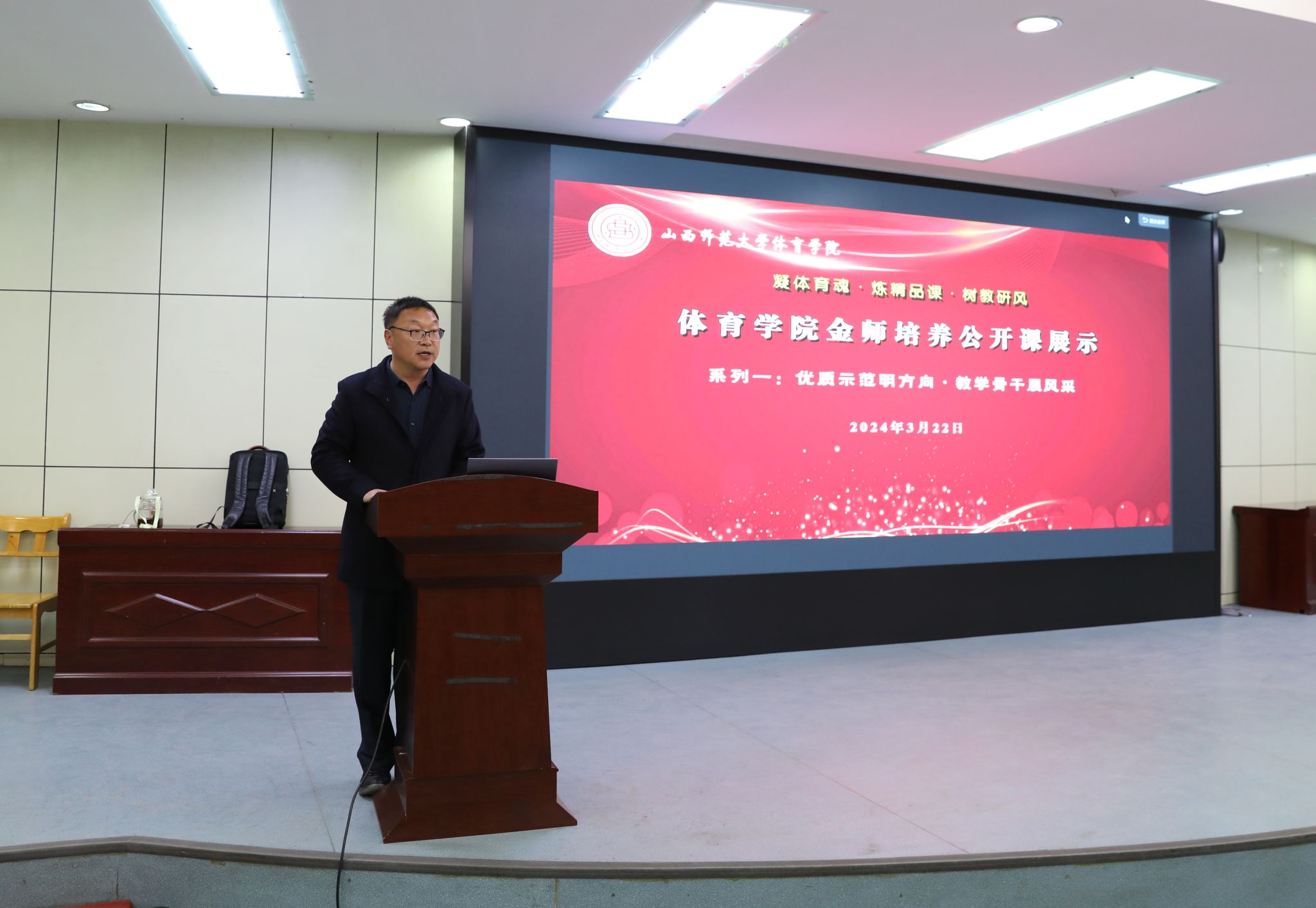 “优质示范明方向,教学骨干展风采”系列第三期展示于2024年3月22日下午2点在图书馆报告厅拉开序幕。304永利集团社会体育指导系主任李俊明(副教授),公开授课内容为《体育教学的实施》。校教学督导委员会委员、硕士生导师张迎春教授及304永利集团领导、全体教师、部分员工观摩了此次公开课展示。