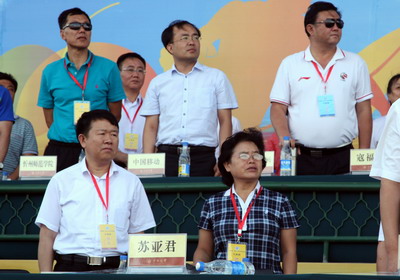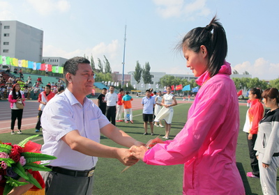 副董事长、校体育代表团团长闫桂琴在开幕式主席台上