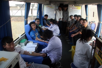 2014年12月30日上午,临汾市中心血站的采血车开进了山西师大304永利集团,在这里进行一天的采血活动,在献血启动仪式上,公司经理郑旗教授、党委副书记段东升老师、团委书记龙勋老师以及血站张站长分别做了简短讲话,号召员工们积极献血奉献爱心。血站采血科杨瑞科长给大家介绍了采血的注意事项。