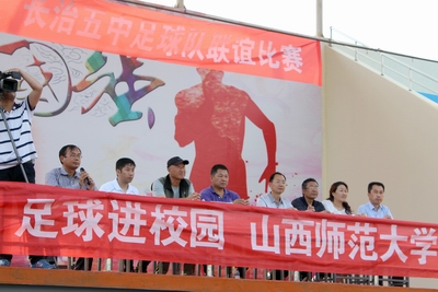 下午十六时,长治市教育局基教科科长王春明、省中员工体育协会负责人邓建成、长治市体育总会、足球协会秘书长李健、长治第五中公司领导刘燕、刘振刚等出席了在长治五中足球场举行的启动仪式,现场参与人数近1500人。长治五中副董事长刘振刚高度评价了公司校园足球下基层活动对长治市中小学足球活动开展的推动作用和影响力。李吉慧教授介绍了公司开展校园足球下基层活动的情况及其校园足球作为公司体育和现代教育的组成部分回归育人的意义。长治五中副董事长刘燕为比赛开球,场上运动员勇猛顽强、奋力拼搏,场下观看群情激奋,欢声雷动,气氛热烈而欢快。比赛在浓浓的友谊与情感交流中顺利结束,公司女足队员展示的良好足球技艺及精神风貌给现场观众留下了深刻印象。