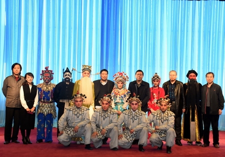 戏曲是我国民间艺术的瑰宝,是一种无形的历史文化遗产。演出举行之前,主持人先向观众简单介绍了蒲剧的有关知识以及临汾市小梅花蒲剧院的发展史,使我们对于蒲剧有了一个深刻的了解,蒲剧在这方土地上产生、发展、繁荣,其音乐节奏强烈明快,唱腔高亢豪放,表演既粗狂舒缓有力,又细腻活泼轻快。随后,临汾市小梅花蒲剧院的演员们表演了《表花》、《跑城》、《火凤凰》、《挂画》、《贩马》、《采花》等戏剧选段。在这些节目中演员运用了帽翅、髯口、翎子、梢子、鞭子、扇子、跷工等表演特技,使整场演出环环相扣、形象逼真,引人入胜。经过将近两个小时的精彩表演,本次活动在演职人员和院领导的合影中圆满落下帷幕。