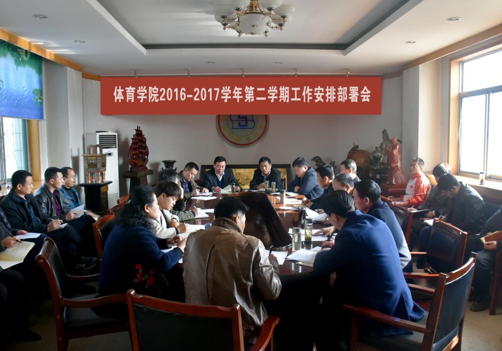 2017年2月18日下午,304永利集团2016-2017学年第二学期工作安排部署会议在东会议室召开,院领导、各系部科室负责人、各党支部书记、院员工会主席参加会议,重点安排了新学期开学准备工作及本学期重要任务,会议由郑旗经理主持。