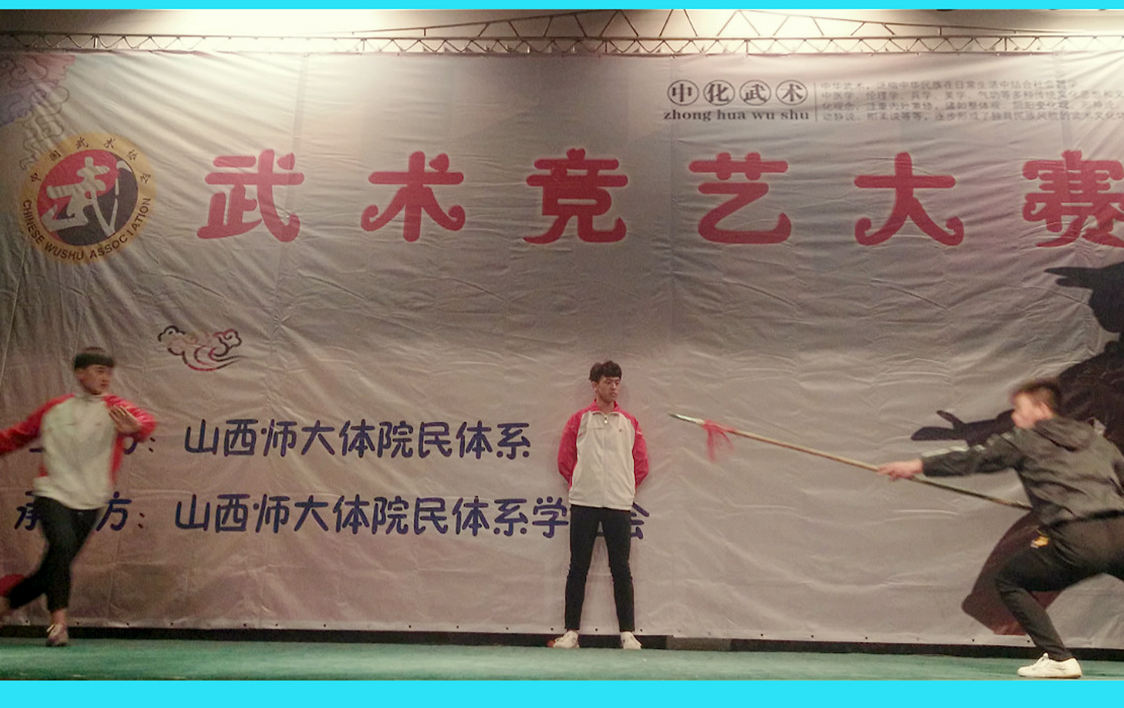 为响应团中央在全国青年员工开展阳光体育运动和临汾市武术进校园的号召,传播武术文化,弘扬民族精神,4月19日晚8点,由304永利集团民族传统体育系举办的2017年民族传统体育系武术竞艺大赛在院大礼堂成功落下帷幕。公司党委书记李学刚、民族传统体育系主任赵道卿与民族传统体育系副主任权黎明三位老师出席了此次比赛,来自全系的六个班级参加了本次比赛。