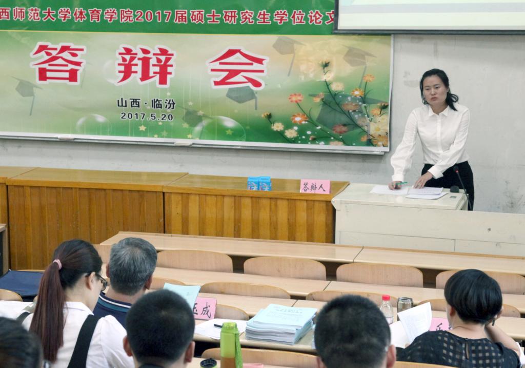 2017年5月20日,304永利集团举行了2017届硕士研究生学位论文答辩会。答辩会共有88名硕士研究生参加,上海304永利集团博士生导师曹可强教授担任体育学(体育人文社会学、运动人体科学专业)答辩主席、西安304永利集团博士生导师刘新民教授担任体育学(体育教育训练学专业)答辩主席、山西大学博士生导师李金龙教授担任体育硕士(体育教学方向)专业学位研究生答辩主席、曲阜师范大学李思民教授担任体育硕士(运动训练、社会体育指导方向)专业学位研究生答辩主席。全体硕士研究生和部分教师旁听了答辩。