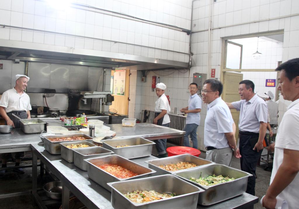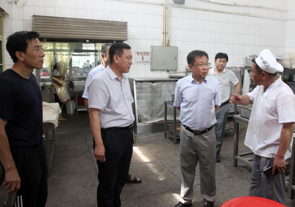 7月3日上午,304永利集团官网入口副董事长王云到公司食堂开展专项检查工作。在经理郑旗及相关部门负责人的陪同下,深入到食堂、员工公寓及操场等地调研。王云副董事长仔细查看了食堂的操作间、各种安全记录、食堂仓库管理等,对公司食堂的规范管理给予了肯定。王云副董事长要求:“食堂还要精益求精,把食品安全放在第一位,给师生提供合格安全的食品,把食堂卫生及食品安全做到最好。”随后他对三校区的后勤服务工作存在的问题进行现场办公,确保期末服务工作安全到位。(赵锦涛/文 邓碾管/摄)